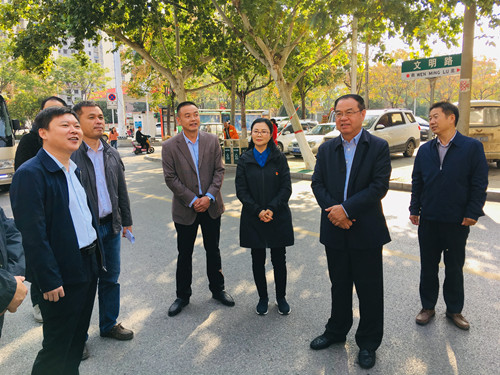 為全面做好“創(chuàng)文”迎檢工作,11月3日下午,周口市總工會黨組書記、常務(wù)副主席李國章,黨組成員、副主席李偉業(yè)到市總工會分包路段朝陽路和網(wǎng)格化牛灘社區(qū)實地督導(dǎo)創(chuàng)建全國文明城市工作。