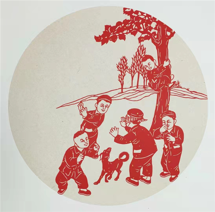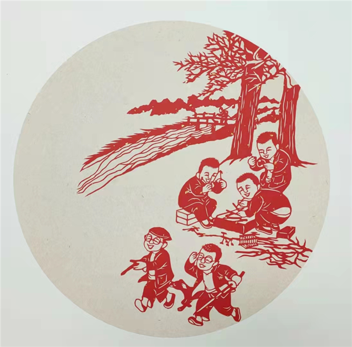 透過紅紙,有的孩童正神采飛揚(yáng)地玩捉迷藏,有的正有模有樣地幫著長(zhǎng)輩干農(nóng)活,還有的在乖巧地看長(zhǎng)輩下象棋……為助力全國(guó)文明城市創(chuàng)建,表達(dá)對(duì)健康生活的熱愛,近日,周口剪紙非遺傳承人劉秀華創(chuàng)作出了一組“童趣”剪紙作品。