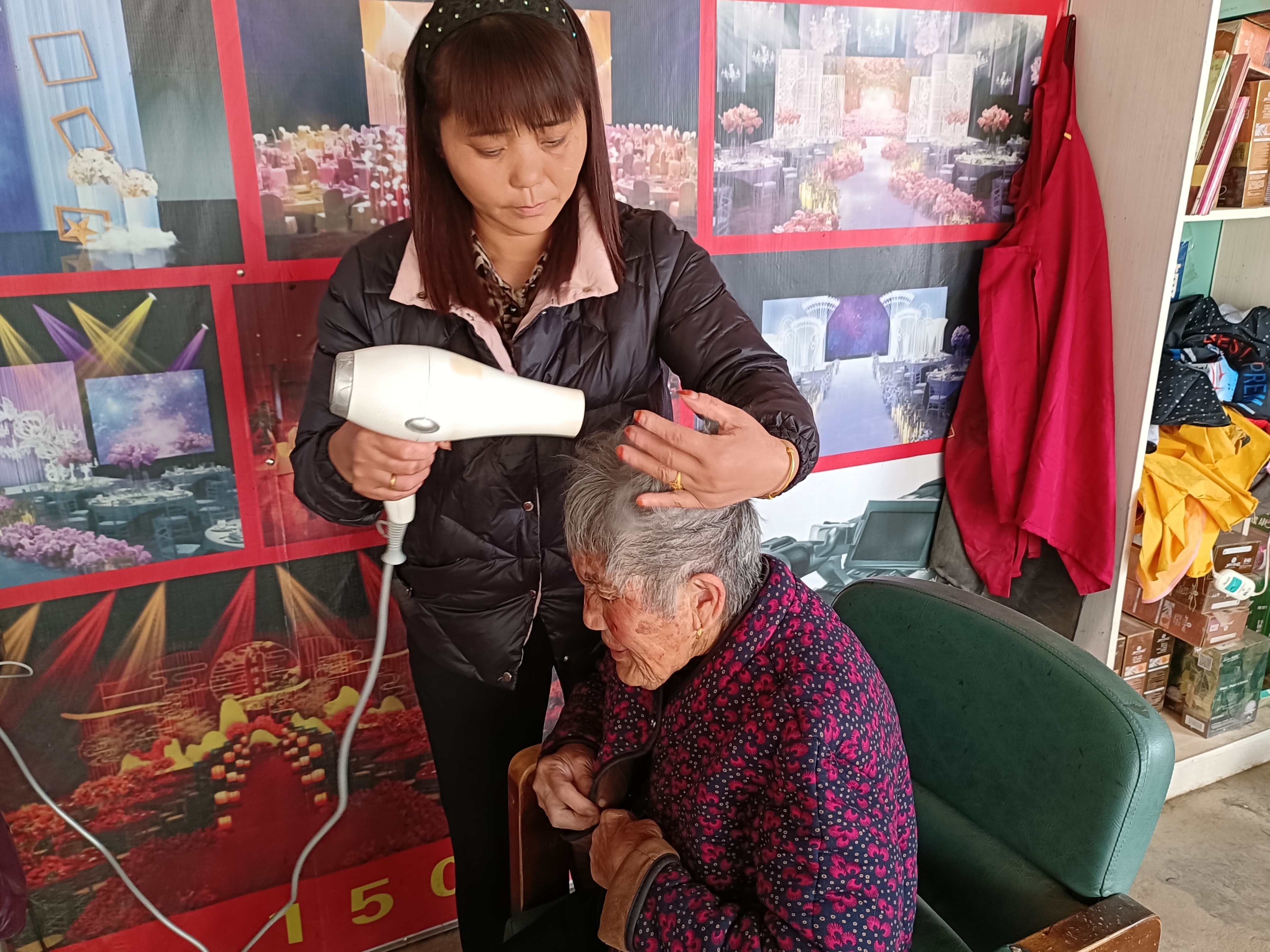11月3日,記者接到熱線電話,說(shuō)周口市城鄉(xiāng)一體化示范區(qū)搬口辦事處搬口行政村有位媳婦叫張書艷,她常年照顧90歲高齡的婆婆非常盡心。當(dāng)天下午,記者來(lái)到位于周口市第十六初級(jí)中學(xué)附近的名流美發(fā)店,見到了忙著給客人理發(fā)的張書艷,她婆婆楊秀真坐在旁邊,兩人之間的交流宛若親母女。