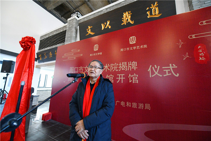市文聯(lián)主席吳青峰在開(kāi)館儀式上宣讀賀信