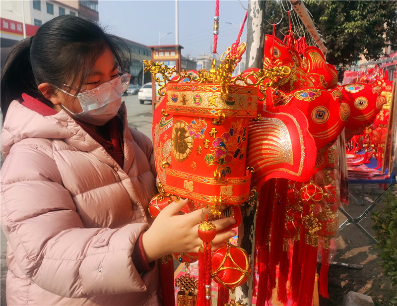 1月27日,市民在認真挑選著新年的裝飾品。春節(jié)臨近,虎年生肖飾品、對聯(lián)、中國結(jié)、福字、大紅燈籠等“紅色年貨”火了年貨市場。據(jù)了解,各種寓意祥和的春聯(lián)、以老虎為主題的各種窗花、各種飾品最受市民歡迎。③10