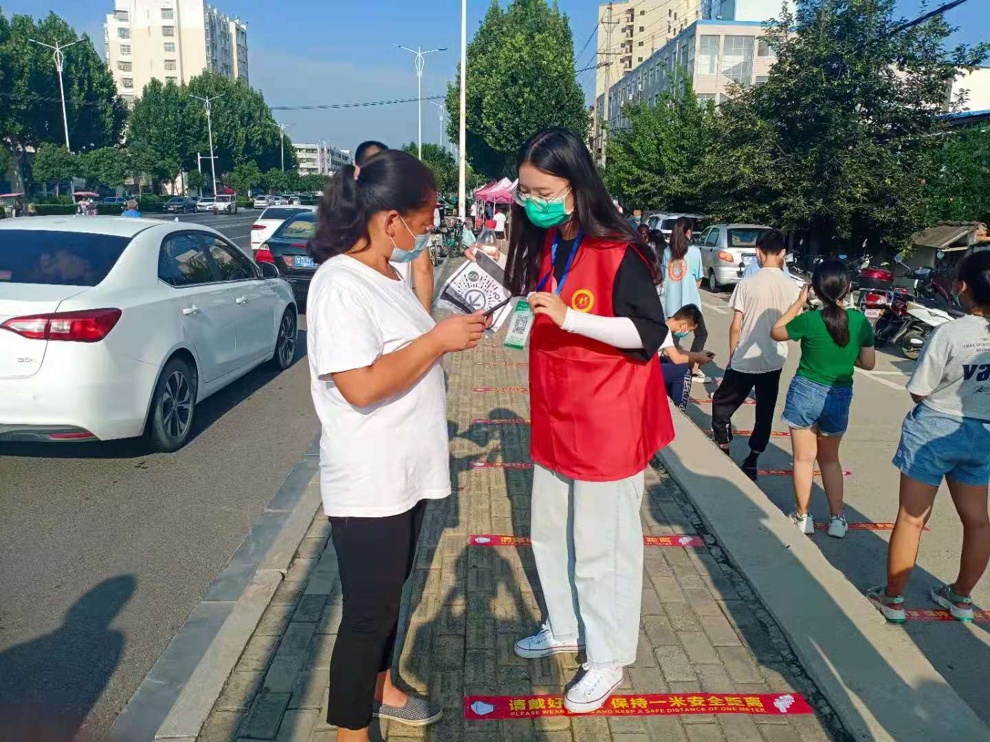 在三川社工疫情防控隊伍中,還有這樣一名少年,利用暑期的休息時間,和身為義工的媽媽一起在核酸檢測點戰(zhàn)“疫”。在人群中,他穿著紅馬甲,一遍遍提醒現(xiàn)場群眾有序排隊、戴好口罩,耐心幫助不會操作的老人完成信息采集、掃碼登記。紅馬甲濕了又干,嗓子又干又燥,但是他沒有絲毫退縮,一直堅守到核酸檢測全部結束。