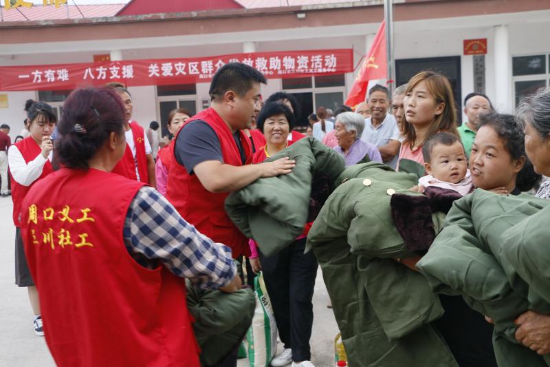 去年7月底,面對來勢洶洶的雨情汛情,三川社工迅速反應,立即組建了由60名社工、義工組成的防汛救災突擊隊,連續(xù)10天在賈魯河沿岸3個村莊和二板橋段開展防汛值守;組織40名社工、義工裝卸防汛救災物資,向川匯區(qū)、西華縣、扶溝縣30多個防汛值守點和居民安置點運送食物和救災物資。