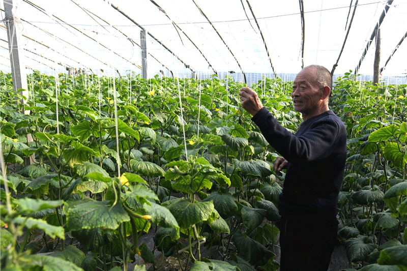 扶溝縣柴崗鄉(xiāng)梅橋村是遠近聞名的黃瓜種植專業(yè)村,全村1200畝土地上建有1100畝蔬菜大棚,最多的一戶村民有大棚10多個,畝均效益5萬多元,黃瓜種植成為當(dāng)?shù)剜l(xiāng)村振興的好產(chǎn)業(yè)。圖為昨日70多歲的脫貧戶梅鐵棍在幫助兒子管理黃瓜。