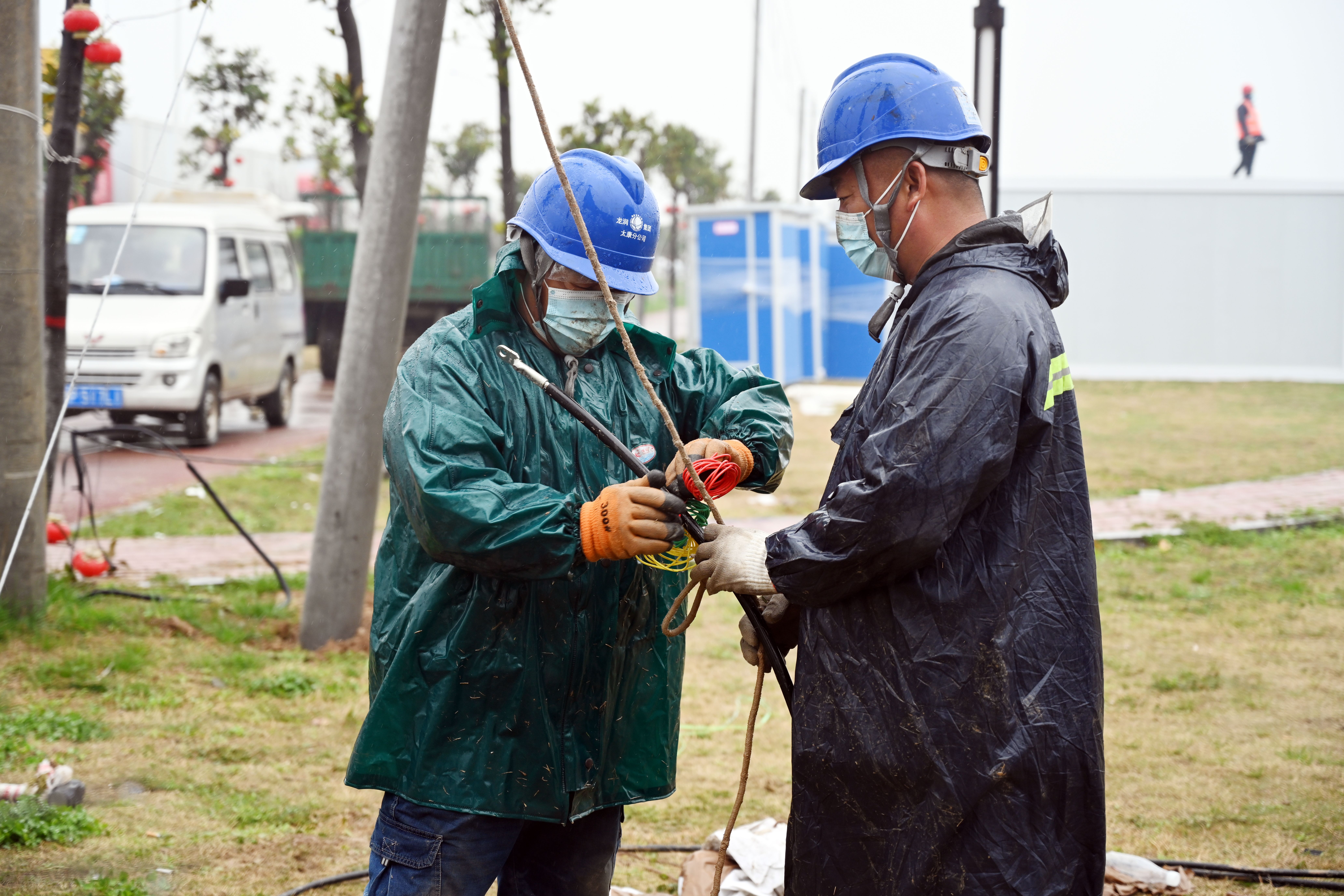 為做好疫情防控應急準備,太康縣政府啟動建設核酸檢測方艙和隔離方艙。國網太康縣供電公司接到供電緊急任務后,立即召開會議,討論電力保障系統(tǒng)建設方案。公司總經理馬攀、黨委書記祁淑慧、副總經理趙明等領導前往現場勘察具體情況,迅速與政府相關部門和建設方取得聯(lián)系,了解用電需求,細化保電方案, 制定詳細的施工方案。組織人員克服天氣寒冷、路面泥濘等困難,連夜冒雨開展工作,采取輪班作業(yè),不間斷連續(xù)施工,全力保障抗疫用電需求。③6