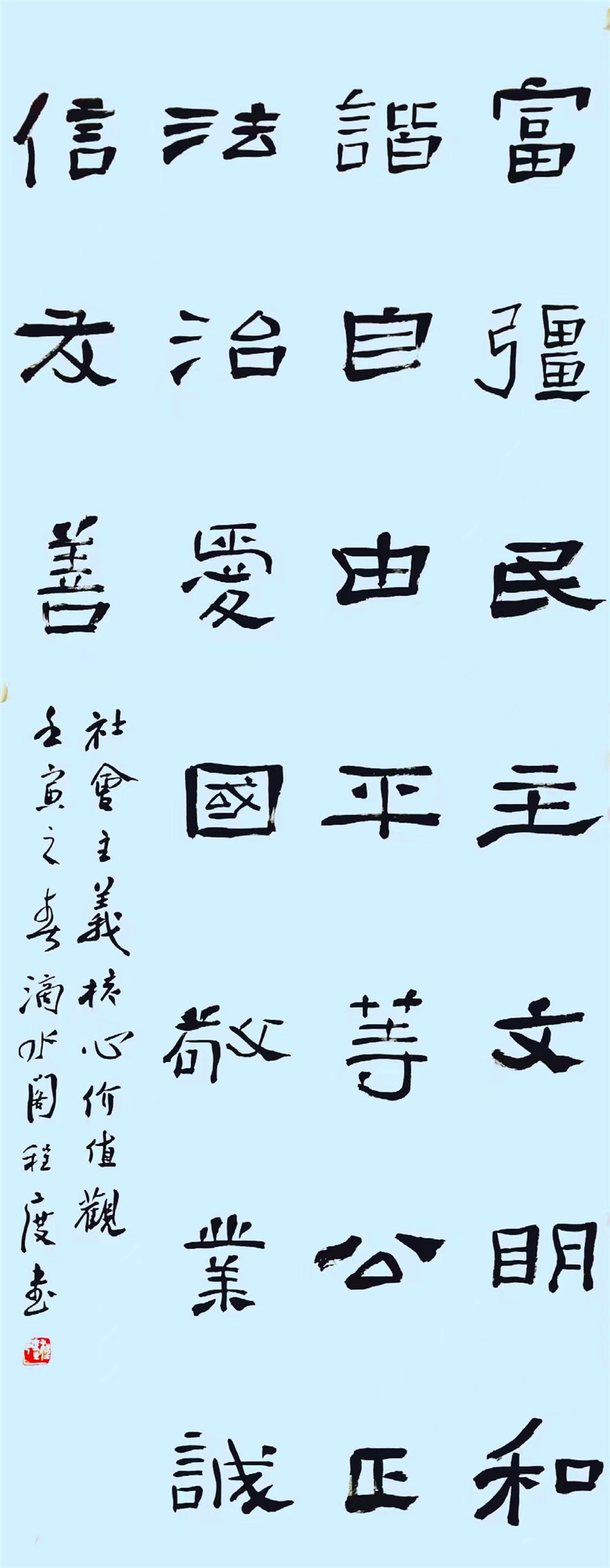 程度 中國書法家協(xié)會(huì)理事、隸書委員會(huì)委員,北京書法家協(xié)會(huì)理事,北京市朝陽區(qū)書法家協(xié)會(huì)秘書長(社會(huì)主義核心價(jià)值觀)