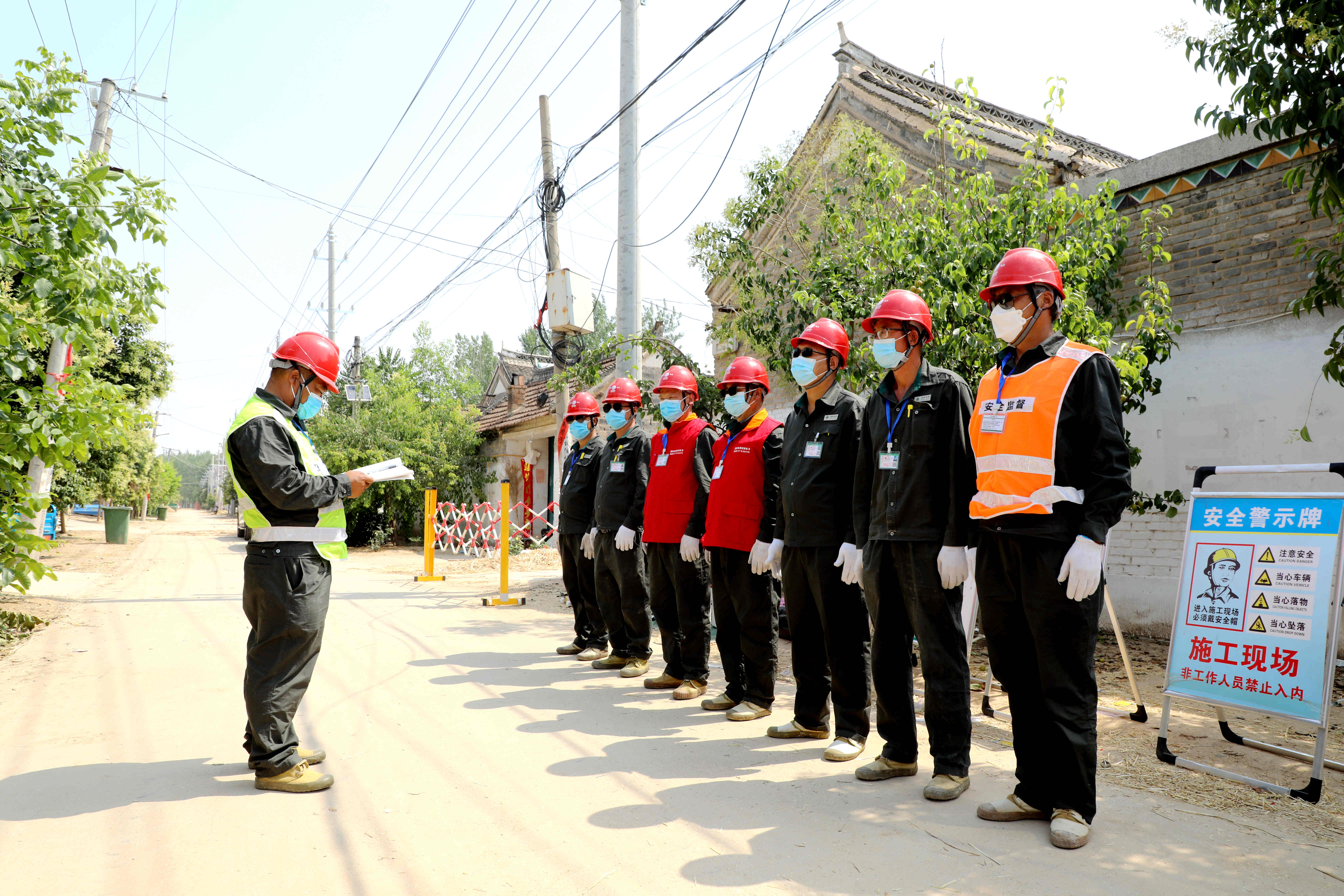 6月9日,在西華縣皮營鄉(xiāng)齊莊行政村潭張1號臺區(qū)施工現(xiàn)場,國網西華縣供電公司組織焦裕祿共產黨員服務隊帶領施工人員分工協(xié)作、高效配合,安裝電表箱、更換下戶線、增容變壓器、新建低壓線路。