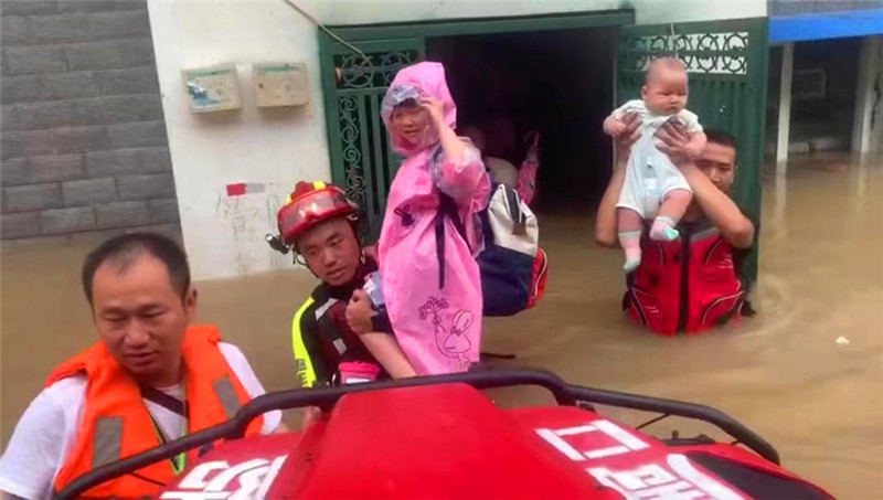 在2020年的抗洪戰(zhàn)斗中,晉松奇率領(lǐng)5人增援小組,星夜馳援河南信陽、安徽六安兩地。在信陽,小組累計出動舟艇13艘次,疏散人員63人、營救49人,共計112人,連續(xù)救援26小時;在安徽,小組開展作戰(zhàn)行動16次,營救被洪水圍困的群眾183人。在轉(zhuǎn)移被困人員的戰(zhàn)斗中,他小心抱起嬰兒的畫面被拍下發(fā)至網(wǎng)上,被網(wǎng)友評價“你小心的樣子,真帥!”談起這段視頻,晉松奇笑著說:“孩子太小了,抱著的時候特別緊張,就一直托著,但因為水太深,還是踩空一步,心里當(dāng)時咯噔一下。后來看到視頻下面有個評論特別有意思,說我抱孩子像抱著炸彈一樣。”2021年7月中下旬,晉松奇又一次主動遞交請戰(zhàn)書加入周口消防支隊防汛救災(zāi)突擊隊,前往扶溝前置備勤。帶隊組建舟艇搜救小組,挨家挨戶搜尋200多家農(nóng)戶,轉(zhuǎn)移受困群眾13名。