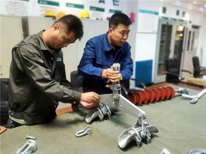 為把學(xué)習(xí)落到實處,提高班組成員主動學(xué)習(xí)的積極性,在當(dāng)日的學(xué)習(xí)中,經(jīng)驗豐富的老師傅還手把手地帶領(lǐng)青年員工對金具進行現(xiàn)場組裝。他們積極討論,相互切磋,取長補短。