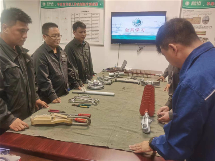 學(xué)習(xí)中,該公司輸電運維支撐中心五級職員鄧建國向大家講解了常用輸電線路金具的種類及用途,包括絕緣子、懸垂線夾、連接工具的介紹和使用。