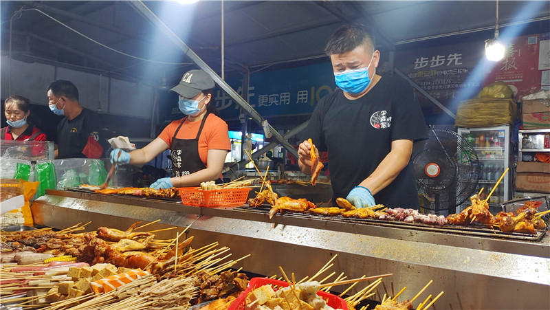 采訪中,記者還了解到,在原縣委黨校地攤夜市發(fā)展壯大的過程中,西華縣商務(wù)局、城管局、市場監(jiān)管局等部門牽頭引導(dǎo)商戶在西華縣高鐵站、上億美食廣場和西華縣南廣場設(shè)置地攤夜市,進行規(guī)范管理,繁榮西華“夜經(jīng)濟”,共設(shè)置190余家攤位,日均消費35萬元左右。①5