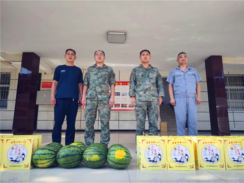 立秋過后,室外溫度依然高達39攝氏度,人們都躲在室內(nèi)開著空調(diào)或吹著風扇享受著清涼。此時,淮陽區(qū)人武部大院門口,一中年男子把車上所裝的“淮寶牌”焦饃等慰問品卸下后,徑直走進區(qū)人武部政委劉鋒辦公室。