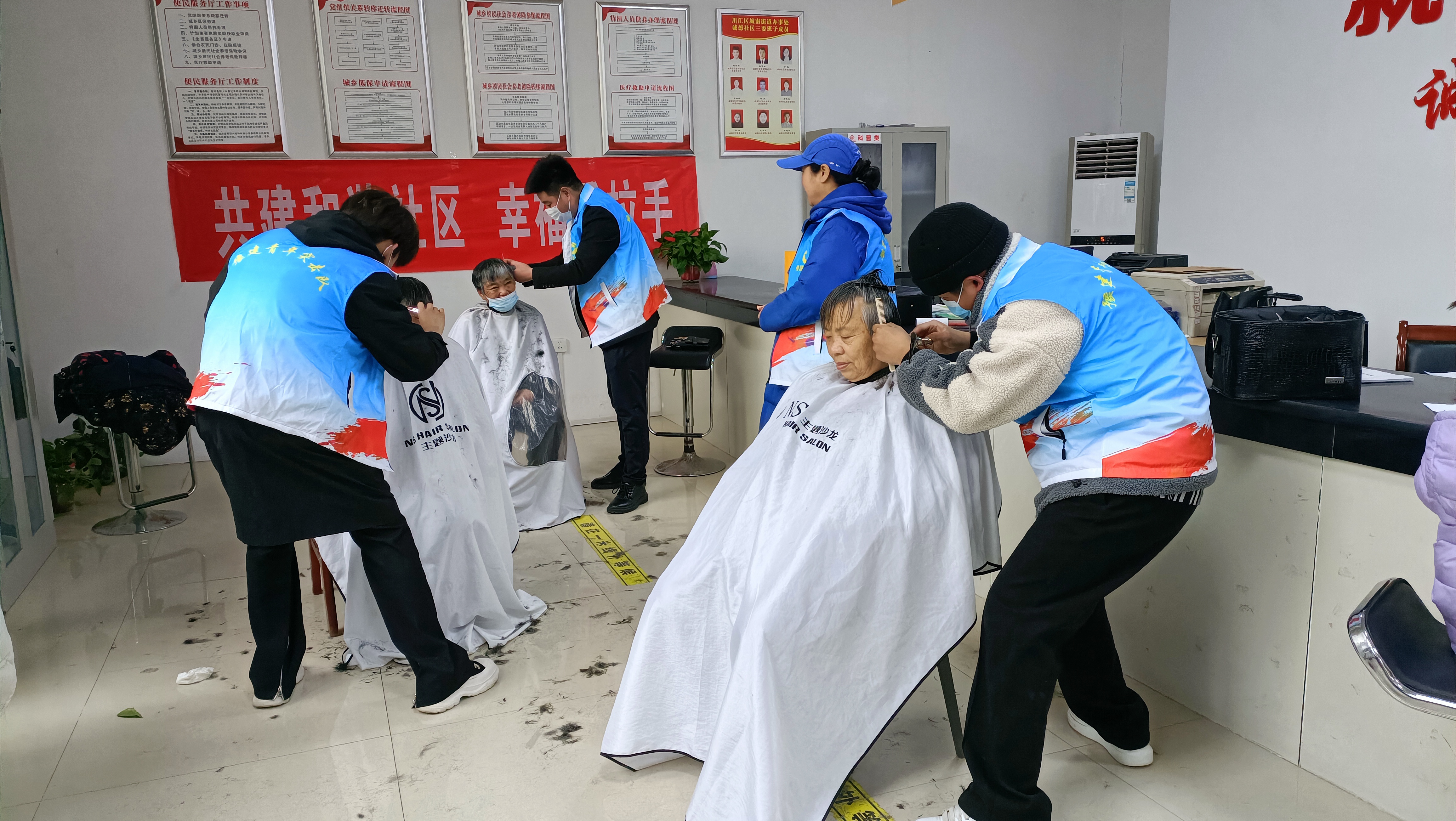 志愿者們一邊為老人們剪著頭發(fā),一邊陪老人們聊聊天、拉拉家常??粗敉旰蟮陌l(fā)型,老人們樂得合不攏嘴,一直將“謝謝”掛在嘴邊,紛紛表示在社區(qū)服務(wù)站就能剪一個清爽滿意的發(fā)型,真是太好了。居民李婆婆表示自己出入需要輪椅,想外出理發(fā)很不方便,志愿者們此舉為她解決了個大難題。