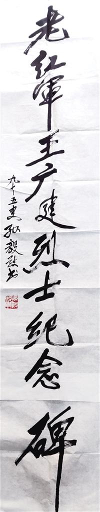 1999年,孫毅將軍95歲時(shí)為王廣建烈士紀(jì)念碑題寫的碑文。