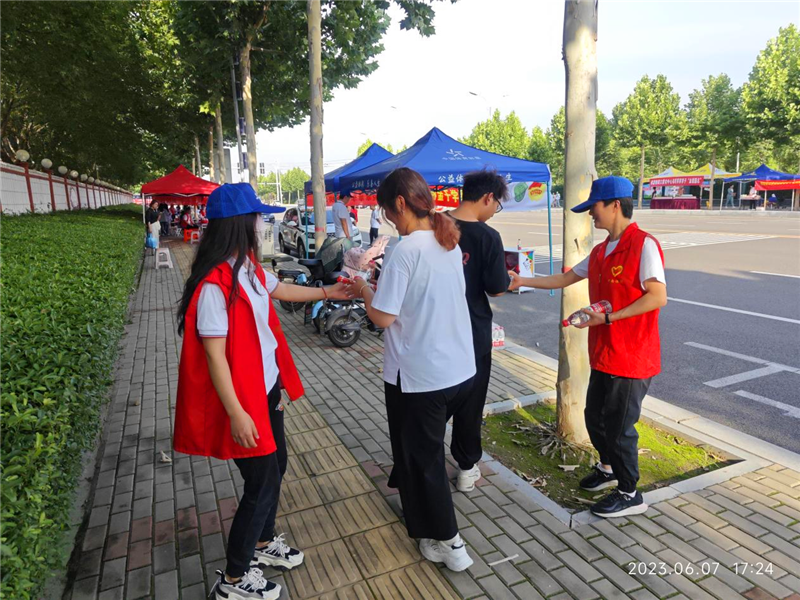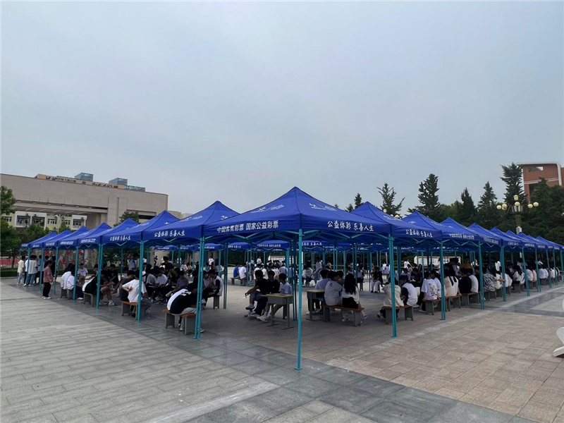 本次活動周口體彩分中心協(xié)調到40余頂帳篷,在考場外設置服務點為考生及家長提供飲用水、歇息區(qū)。結合周口市文昌中學實際情況,在考場校園內搭設一整片體彩遮陽帳篷陰涼區(qū)域,為考生候場提供一片“清涼”。 與此同時,體彩志愿者熱情地為考生及家長提供愛心服務,送上一瓶瓶清涼的礦泉水,帶著滿滿的愛心與祝福,給莘莘學子們加油助威,讓他們切身感受到體彩人的擔當和真摯的關愛。