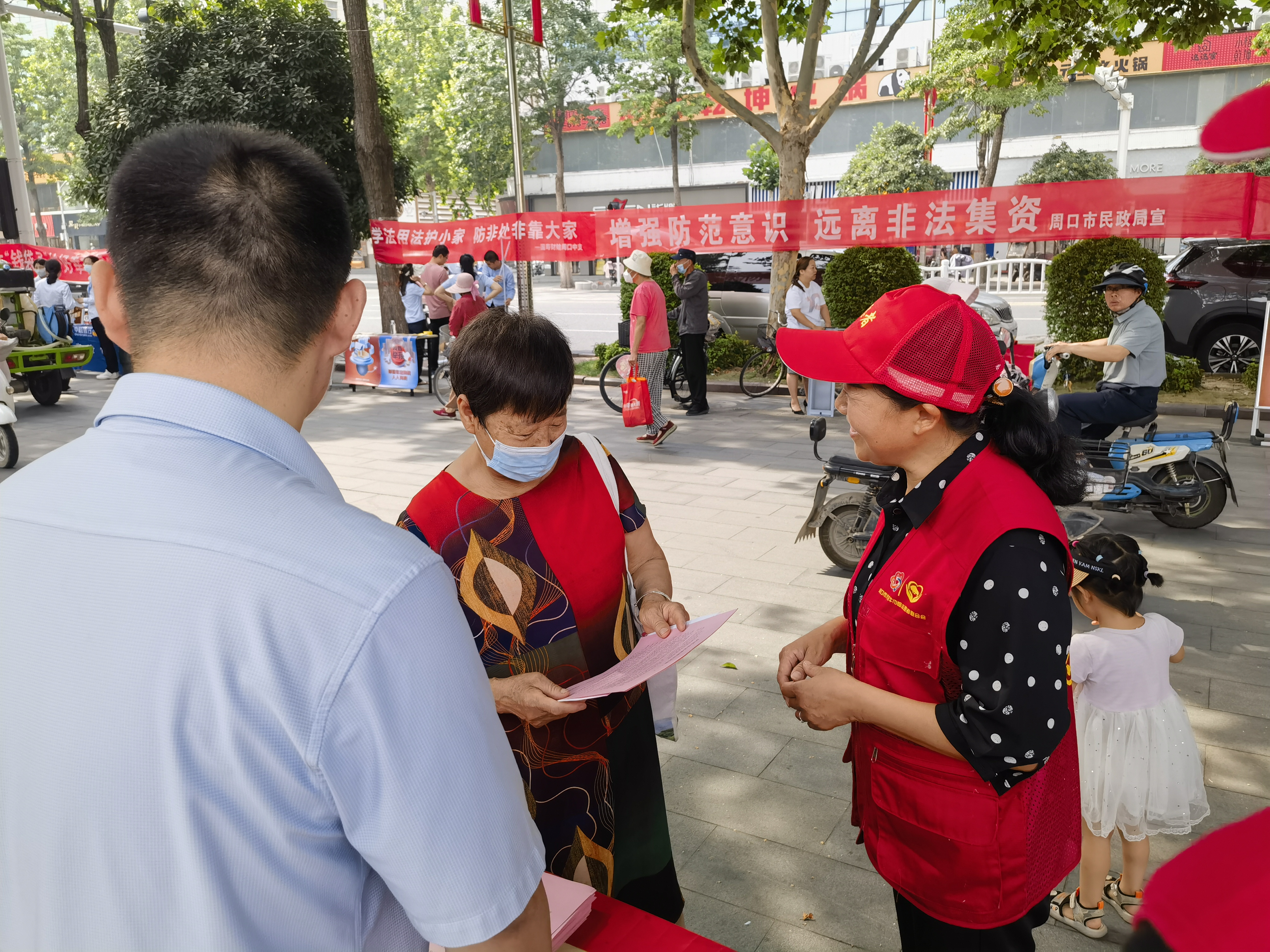 近日,周口市中級(jí)人民法院在中心城區(qū)五一文化廣場(chǎng)開(kāi)展防范非法集資普法宣傳活動(dòng)。此次活動(dòng)的開(kāi)展,進(jìn)一步增強(qiáng)了廣大人民群眾防范非法集資的法律意識(shí),營(yíng)造了打擊和防范非法集資犯罪的良好氛圍。