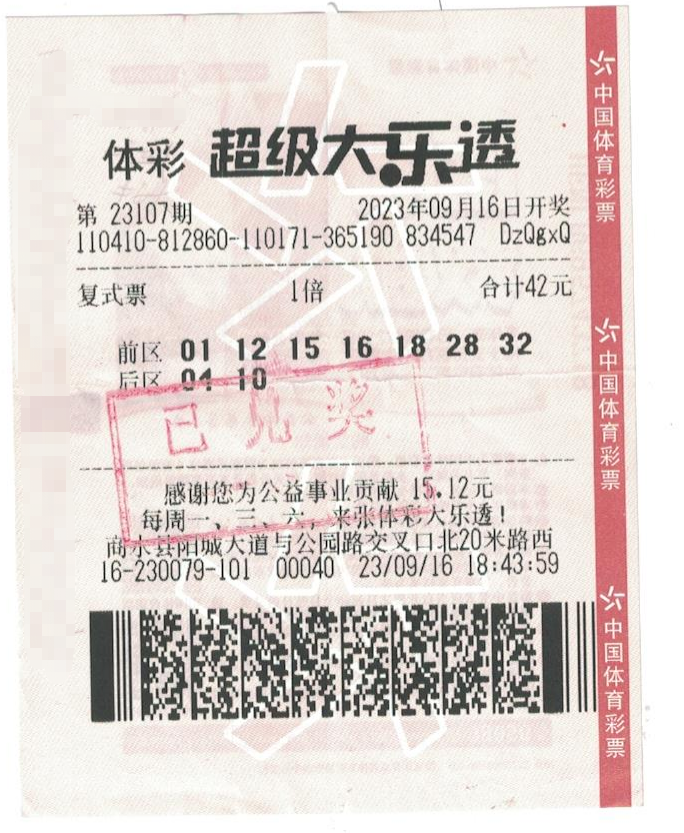 日前,超級大樂透第23107期開獎,前區(qū)開出號碼:01、12、15、16、18,后區(qū)開出號碼:03、10。位于商水縣陽城大道與公園路交叉口北20米路西(實體店編號:4116230079)的幸運實體店傳來喜訊:某購彩者喜中大樂透二等獎,斬獲獎金16.9萬元。