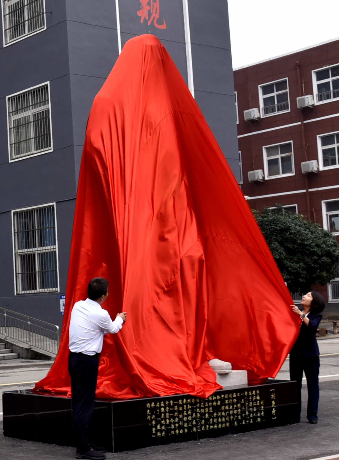 最后,王春華和李啟明在歡慶氛圍中為雕像揭幕。