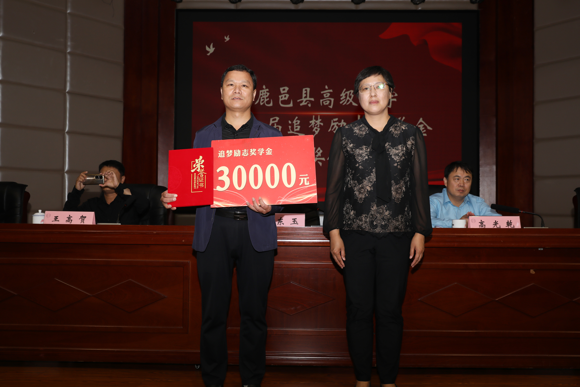 9月28日,鹿邑縣高級中學第二屆追夢勵志獎學金頒獎儀式在學術(shù)報告廳舉行。縣教體局黨組書記、局長何東玉,學校黨總支書記高光乾,優(yōu)秀校友王高賀、張殿朋、耿文清、李偉杰及部分師生代表參加頒獎儀式。副校長王巖峰主持頒獎儀式。
