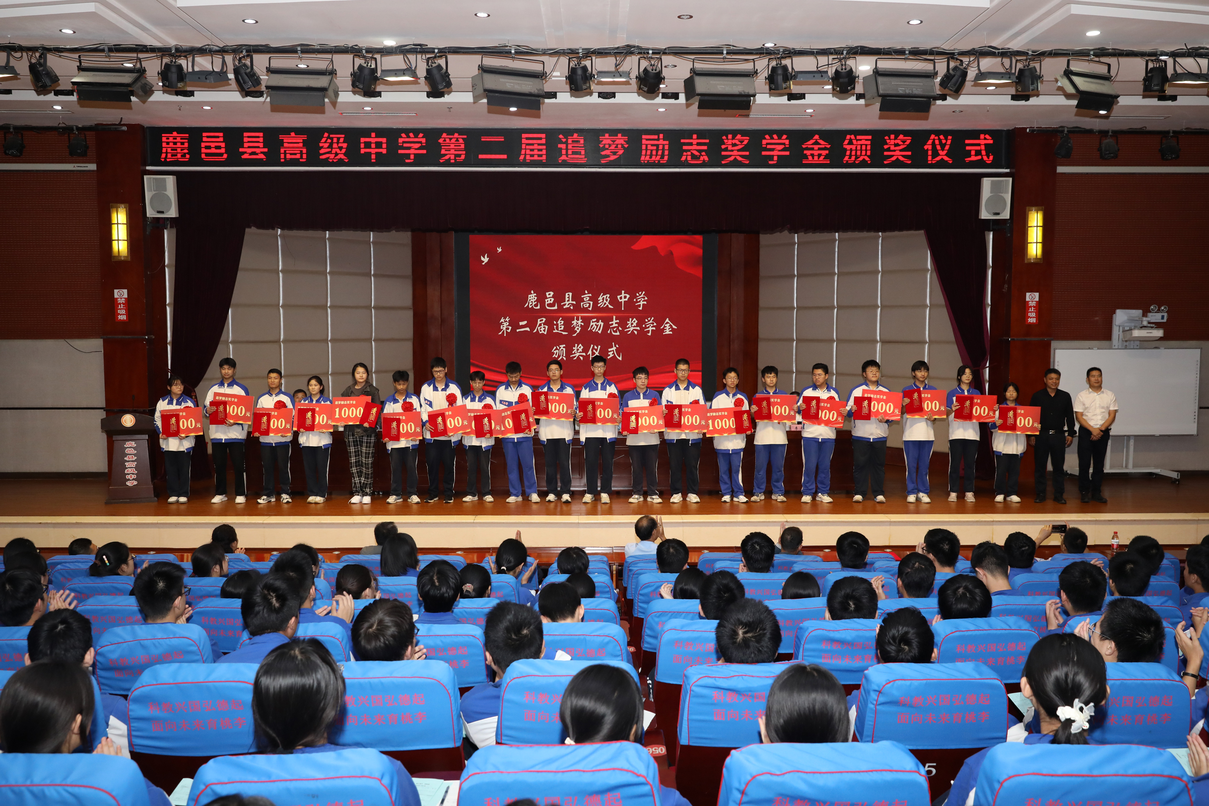 據(jù)了解,鹿邑縣高級中學追夢勵志獎學金是2022年由優(yōu)秀校友、暨南大學教授王高賀發(fā)起,部分校友和社會愛心人士自愿捐贈資金,在學校設立的勵志獎學金,用于獎勵母校優(yōu)秀的學生和教師團隊。此次頒獎儀式共頒發(fā)獎學金11萬元,周樂樂、張逍遙等40位同學和高小飛、毛東方等6個班級教師團隊獲得追夢勵志獎學金。在2023年高考中,陳孟康同學被北京大學飛行員班錄取,北清部全體教師獲得3萬元名校獎。