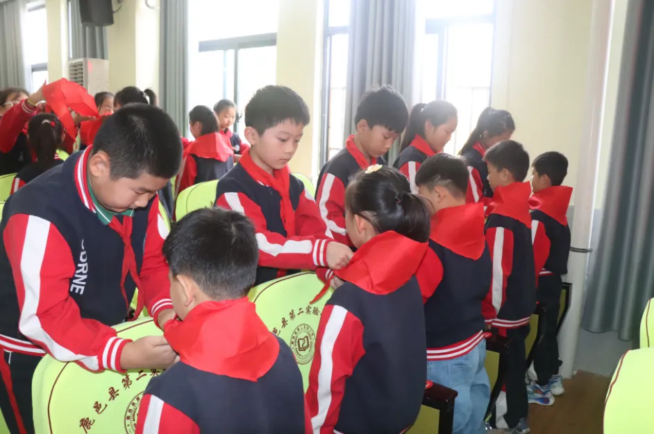 儀式上,該校副校長肖東旭宣布新隊員名單,230名同學加入中國少年先鋒隊,成為一名光榮的少先隊員。緊接著,四年級優(yōu)秀隊員代表莊重地為新隊員代表系上鮮艷的紅領(lǐng)巾。在大隊長的帶領(lǐng)下,全體隊員在隊旗下莊嚴宣誓。少先大隊委員熱烈歡迎新隊員加入。