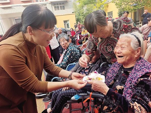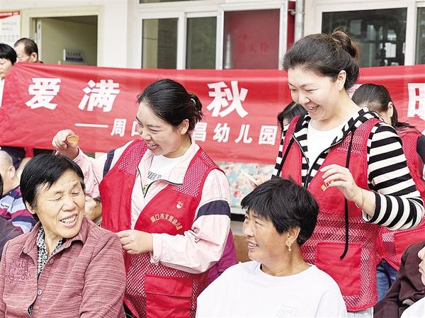 10月10日上午,周口市文昌幼兒園黨支部30余名黨員志愿者來到川匯區(qū)城南街道綜合養(yǎng)老中心,開展“愛滿金秋 情暖重陽”志愿服務(wù)活動。志愿者向老人送去慰問品,并表達對老年人的美好祝福。