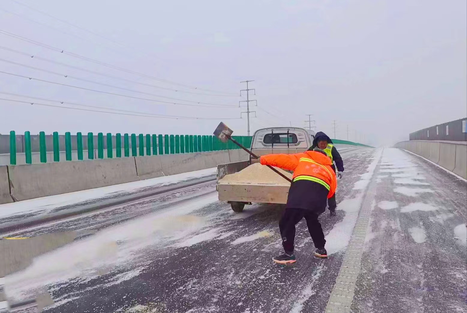 為有效應(yīng)對(duì)本輪大范圍雨雪冰凍天氣,保障普通公路安全暢通,周口市公路事業(yè)發(fā)展中心嚴(yán)格按照省市有關(guān)應(yīng)對(duì)低溫雨雪冰凍天氣的工作要求,進(jìn)一步細(xì)化工作方案,夯實(shí)工作責(zé)任,層層抓好落實(shí)。該中心組織“共產(chǎn)黨員應(yīng)急搶險(xiǎn)突擊隊(duì)”趕赴一線,讓黨旗飄揚(yáng)在除雪融冰應(yīng)急搶險(xiǎn)現(xiàn)場(chǎng),吹響“我們是黨員突擊隊(duì),雪情就是命令,保通就是責(zé)任”的集結(jié)號(hào),全體參戰(zhàn)人員統(tǒng)一調(diào)度,分工協(xié)作,持續(xù)奮戰(zhàn)。
