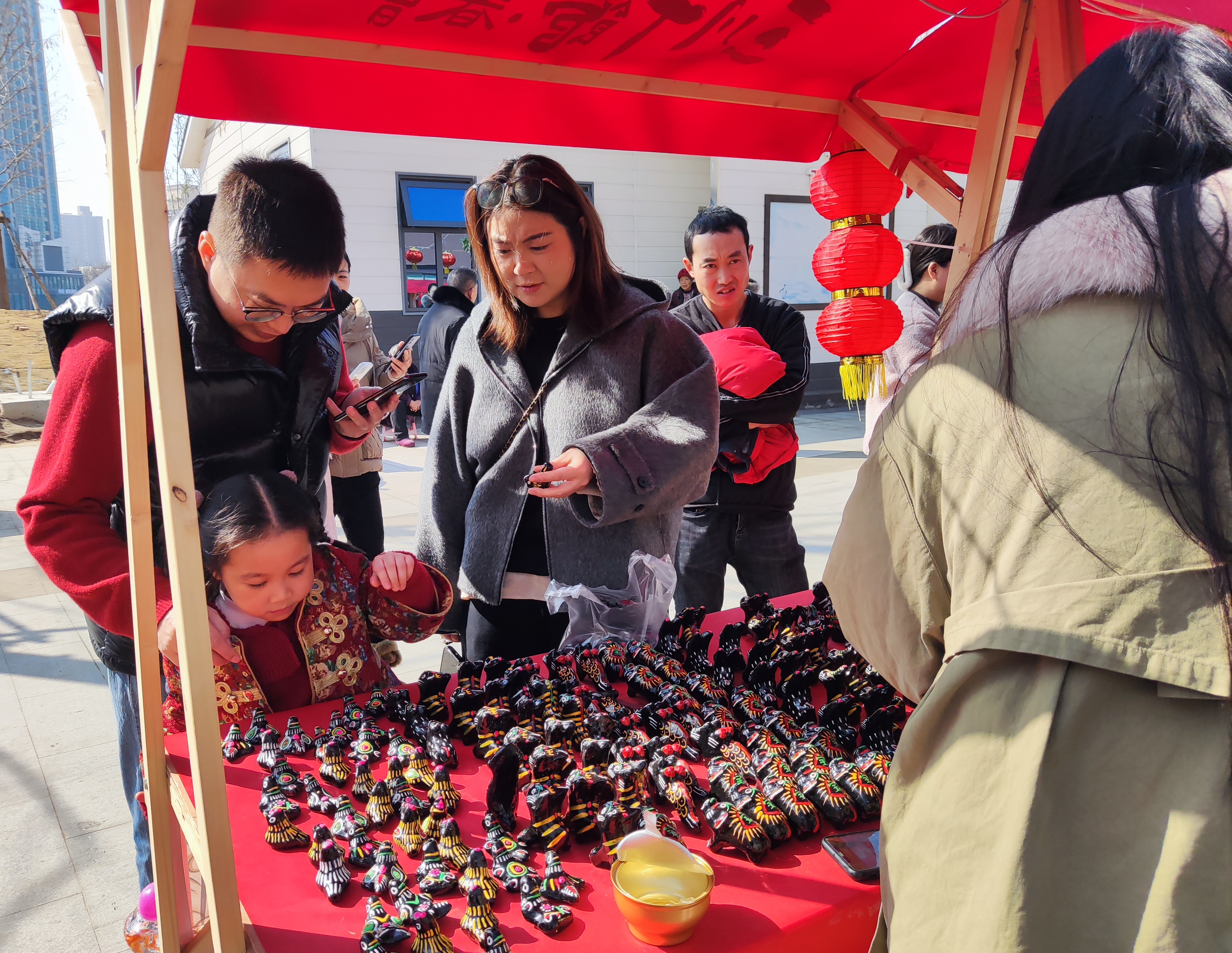 2月12日,“三川十館·春會(huì)”關(guān)帝廟歷史街區(qū)的“古風(fēng)集市”上,人來(lái)人往、熙熙攘攘。布老虎、泥泥狗、剪紙、棕編、草編、糖人等具有周口特色的非遺產(chǎn)品營(yíng)造了濃濃的年味,吸引大量游客前來(lái)欣賞、購(gòu)買。多姿多彩的非遺產(chǎn)品也讓龍年春節(jié)更加具有文化氣息。(記者 王吉城 攝)