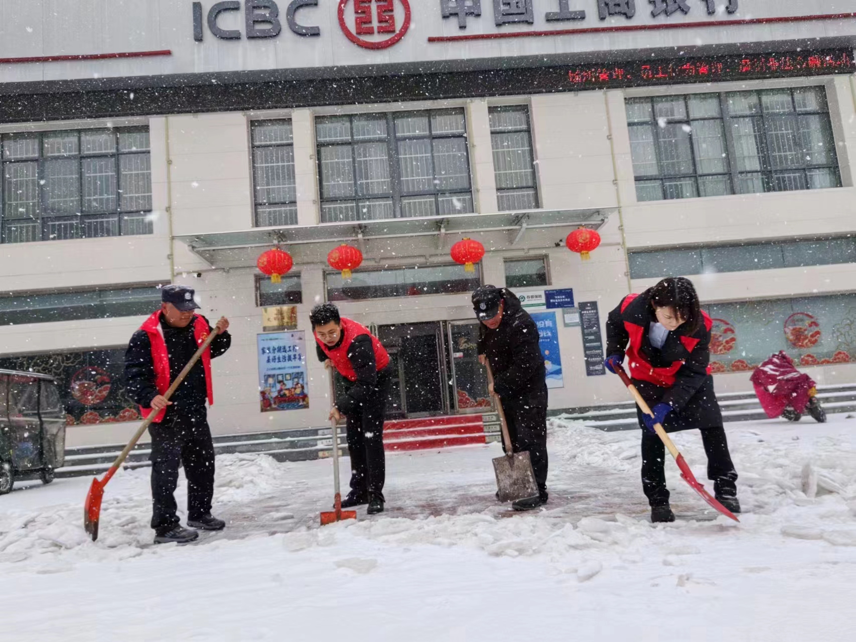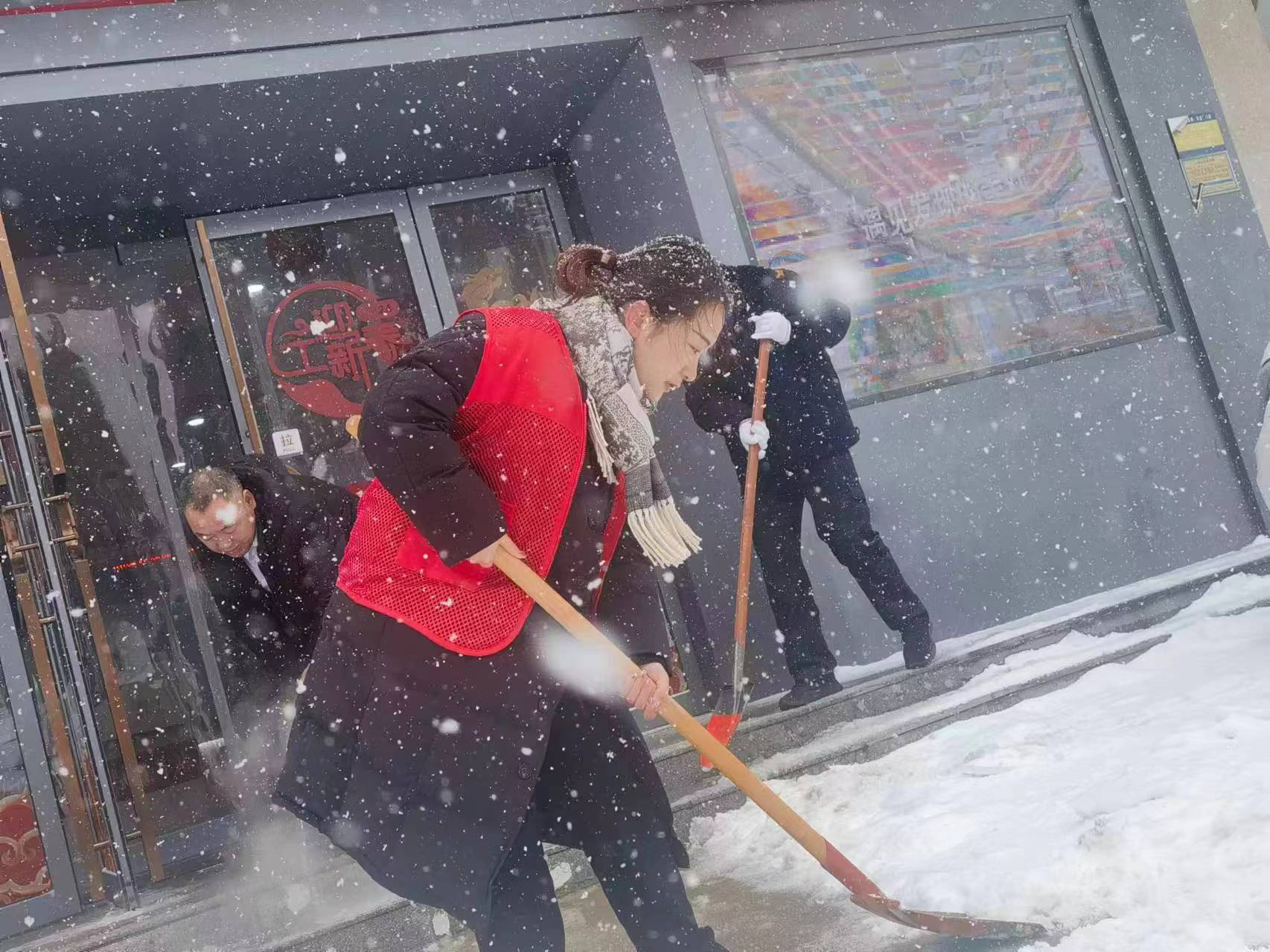 為全面應對我市大范圍降溫雨雪天氣,工行周口分行以雪為令,積極響應周口市文明辦清理積雪倡議,啟動應急預案,嚴格按照市文明辦清理積雪,保障市民外出道路暢通工作部署,統(tǒng)籌協(xié)調(diào),組織轄內(nèi)各機構(gòu)發(fā)動黨員、志愿者全力參與門前三包道路清理積雪活動。該行各營業(yè)網(wǎng)點在營業(yè)前,組織志愿者通過拋撒融雪劑、清掃鏟除分包路段及門店前積雪,清理出一條條便民通道,保障市民和客戶暢通出行。同時,各營業(yè)網(wǎng)點在門前鋪設防滑設施,為客戶到網(wǎng)點辦理業(yè)務提供安全保障。
