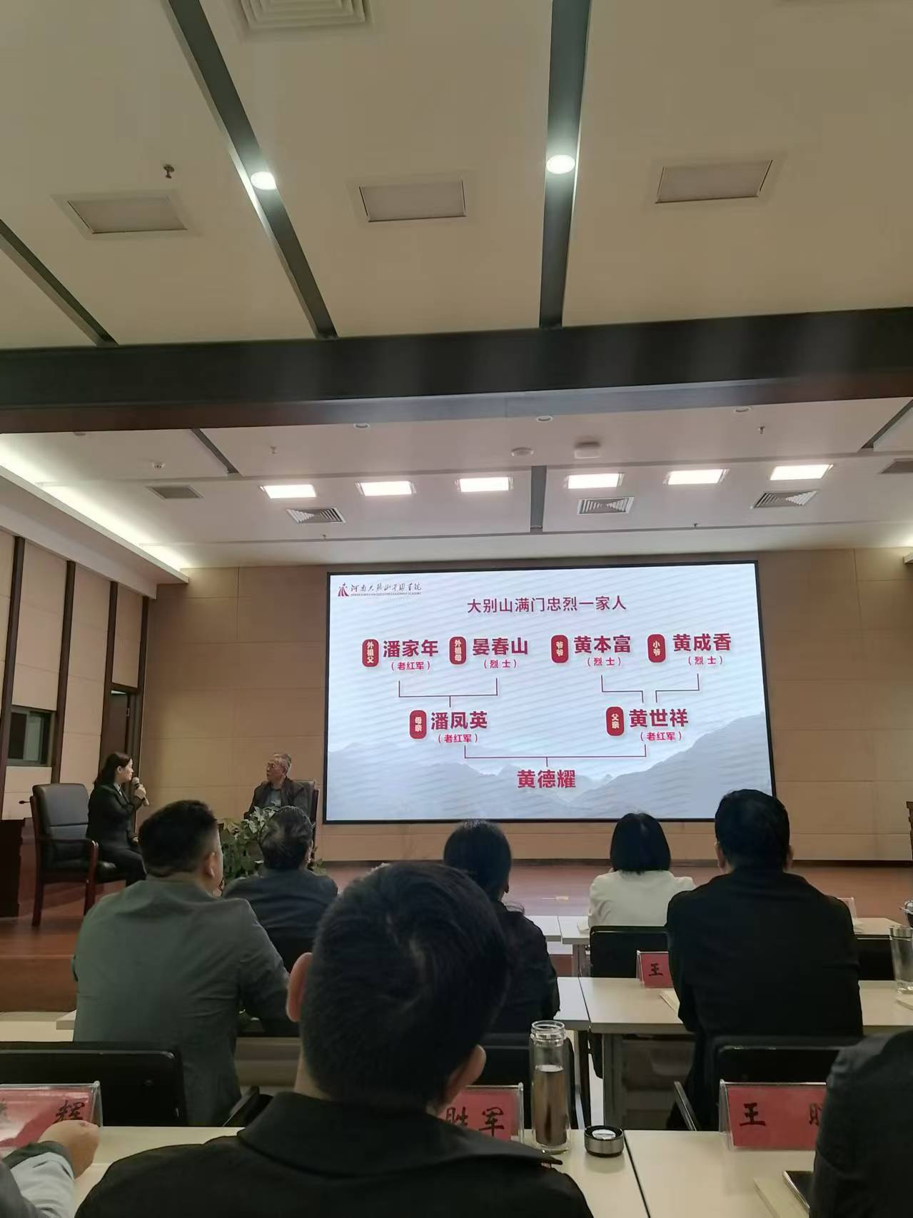 2013年,河南大別山干部學(xué)院成立,了解到黃德耀一家的紅色故事后,學(xué)院決定邀請(qǐng)黃德耀為學(xué)員講述紅色家史,讓更多人了解大別山精神。于是,黃德耀多了一個(gè)特殊身份——大別山干部學(xué)院特聘教師。