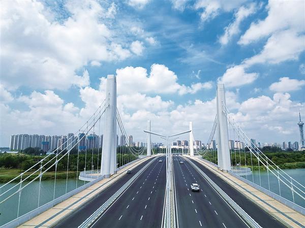 7月25日,藍(lán)天白云映襯下,周口市七一路跨沙潁河大橋以“揚(yáng)帆出?!钡莫?dú)特造型,生動(dòng)展現(xiàn)了這座中原港城的雄心。
