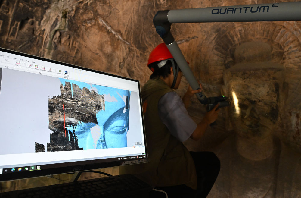 面對(duì)歷經(jīng)千年的石窟,如何延續(xù)其生命力?科技成為關(guān)鍵答案。文物保管展示與文獻(xiàn)資料中心的張國鋒,日常工作便是對(duì)石窟進(jìn)行三維數(shù)字化掃描。他介紹,通過這項(xiàng)技術(shù)建立的高精度數(shù)字檔案,不僅實(shí)現(xiàn)文物信息的永久保存,更讓不可移動(dòng)的石窟“走出去”,突破時(shí)空限制,讓更多人領(lǐng)略其文化魅力。