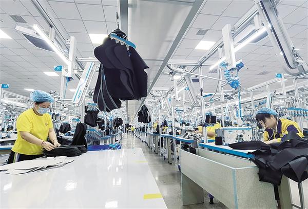 位于商水縣的河南升笑紡織年產(chǎn)1000萬件(套)家紡項目,總投資1.85億元。目前,該項目一期已建成投產(chǎn)。項目滿產(chǎn)達效后,年產(chǎn)值達1.6億元以上,年創(chuàng)稅收達400萬元以上,提供就業(yè)崗位300余個。圖為工人在生產(chǎn)線上忙碌。(記者 王映 攝)
