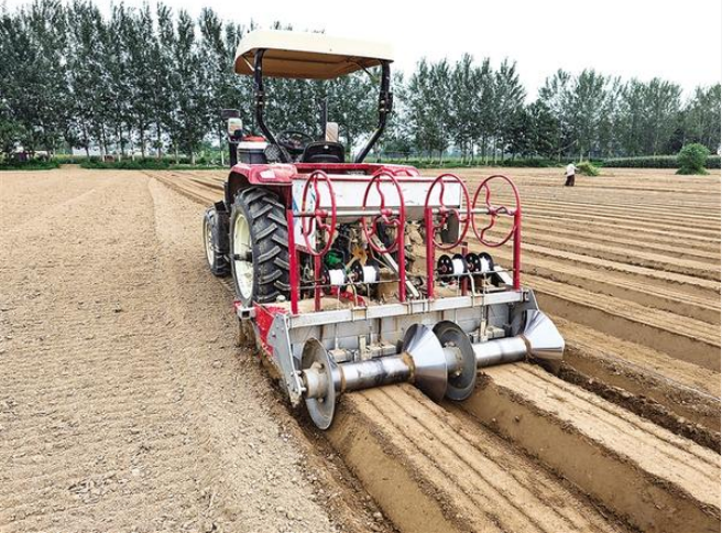 9月4日,在淮陽區(qū)臨蔡鎮(zhèn)吳金鋒家庭農場種植基地,一臺集旋耕、施肥、起壟、播種于一體的北斗導航農業(yè)機械正在播種蘿卜。據了解,使用這種設備播種,可大幅提高播種效率。記者 付永奇 攝