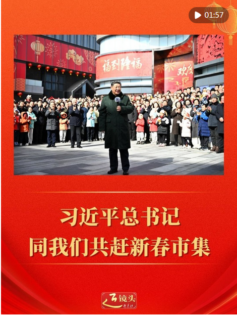 習(xí)近平總書(shū)記同人民群眾共趕市集、共迎新春,是年節(jié)里最溫暖的圖景??倳?shū)記走到百姓中間,送上真摯的新春祝福:“在農(nóng)歷馬年龍馬精神、身體健康、事業(yè)有成、闔家幸福!”