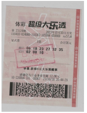 10月30日,體彩大樂透第23124期開獎。當(dāng)期開獎號碼為前區(qū):06、18、23、27、32,后區(qū):06、10。位于周口市西華縣4116220094體彩實(shí)體店傳出喜訊,購彩者馬先生喜中大樂透二等獎,斬獲獎金9.6萬元?!?a href="http://www.hotmeol.com/content/2023-11/20/content_1036092.html" target="_blank" >[詳細(xì)]