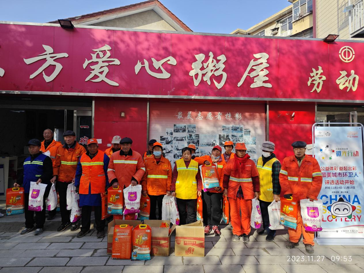11月27日,周口體彩分中心工作人員攜帶米、面等物資來到“東方愛心粥屋”開展“公益體彩 益起出彩”致敬“城市最美環(huán)衛(wèi)人”活動公益活動,對20名“城市最美環(huán)衛(wèi)人”開展捐助。……[詳細(xì)]