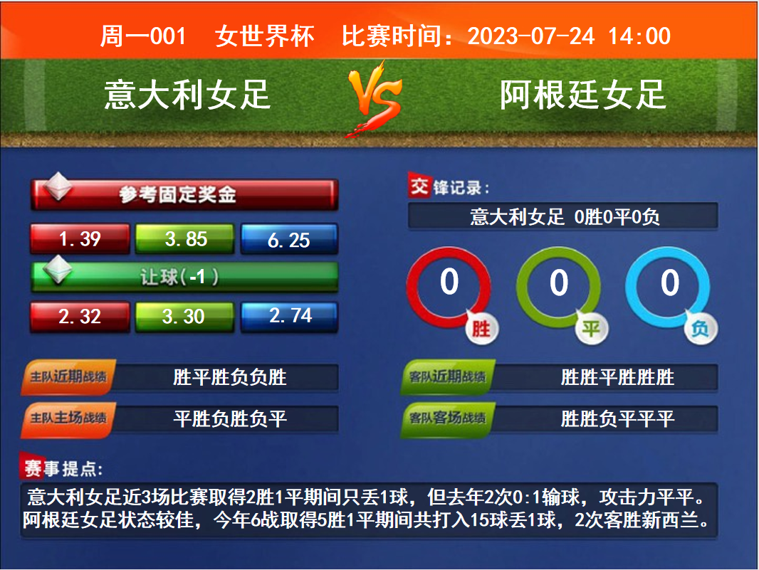 周一競(jìng)彩足球強(qiáng)檔:意女足青春風(fēng)暴 德國(guó)女足有波動(dòng)……[詳細(xì)]