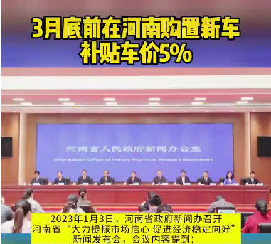 3月底前在河南購置新車補(bǔ)貼車價(jià)5%