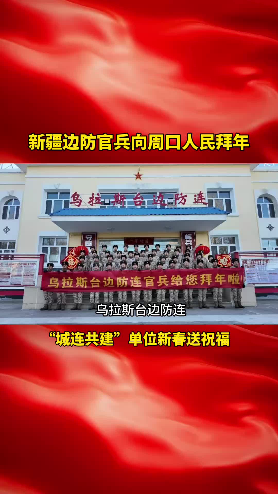 新疆軍區(qū)烏拉斯臺邊防連是周口市的“城連共建”單位,新春將至,官兵們錄制了一段拜年視頻,向周口父老鄉(xiāng)親表達(dá)新春的祝愿!
