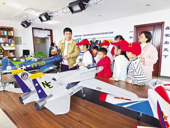 11月1日,周口報業(yè)大廈,周報航空俱樂部迎來80余個小記者家庭。家長陪同參觀,小記者們分成3組,依次參與展示、動手、體驗3個環(huán)節(jié)。
