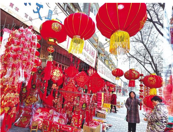 2月12日,市民在扶溝縣城一商店選購新年飾品。馬年新春將至,市民紛紛走上街頭選購各色年貨,在濃濃年味中喜迎新春。