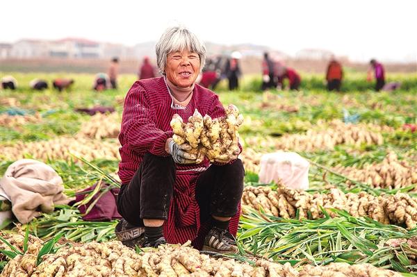 11月16日,淮陽區(qū)曹河鄉(xiāng)朱莊行政村的農(nóng)戶們忙著采收、分揀、搬運(yùn)飽滿肥碩的生姜。該村四百余畝生姜迎來豐收,預(yù)計(jì)畝產(chǎn)超萬斤,將為當(dāng)?shù)剞r(nóng)戶帶來可觀收益。