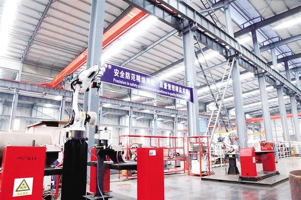 廠房門口,龍門吊下,一臺(tái)長(zhǎng)13米、寬3米、高2.5米的智能化工業(yè)鍋爐靜靜橫置,正等待它的萬里遠(yuǎn)航。