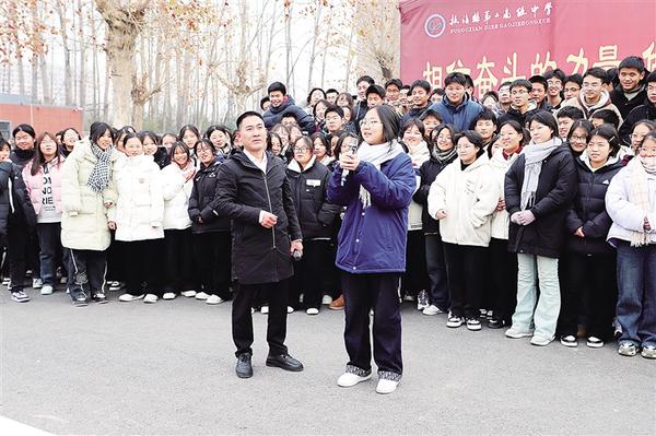12月20日,黨的二十大代表、全國最美教師劉秀祥(前左)到扶溝縣第二高級中學(xué)開展“弘揚(yáng)踐行教育家精神”“傳承紅色基因、學(xué)思踐悟中國共產(chǎn)黨人精神譜系”活動,結(jié)合自己的成長經(jīng)歷,引導(dǎo)學(xué)生立報(bào)國強(qiáng)國大志向、做挺膺擔(dān)當(dāng)奮斗者。
