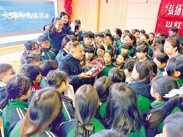 近日,退役軍人張千在商水縣第一高級中學(xué)的講臺(tái)上為學(xué)生講述人民海軍從無到有、由弱變強(qiáng)的壯闊征程。
