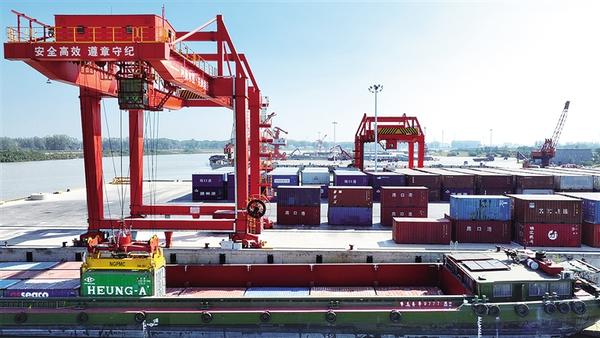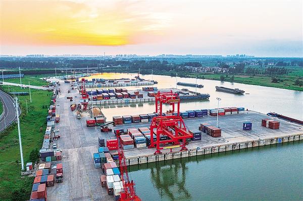 作為國家重點(diǎn)建設(shè)的36個(gè)內(nèi)河港口之一,目前,周口中心港已建成投用47個(gè)千噸級泊位,年吞吐能力達(dá)3000萬噸,開通18條國內(nèi)集裝箱航線及14條國際集裝箱航運(yùn)通道,實(shí)現(xiàn)了“箱通世界、貨運(yùn)全球”。圖為記者近日拍攝的周口中心港碼頭集裝箱裝船作業(yè)現(xiàn)場。