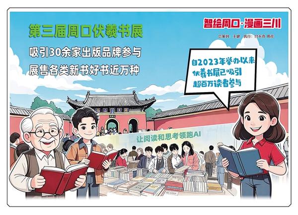 龍湖碧波映羲陵,時代書香沁古城。近日,第三屆周口伏羲書展從淮陽移師周口中心城區(qū),繼續(xù)開展專場展銷活動。本屆書展以“讓閱讀和思考領(lǐng)跑AI”為主題,聚焦“閱讀價值升維”,重點展售經(jīng)典人文、認(rèn)知提升、深度思考類圖書。