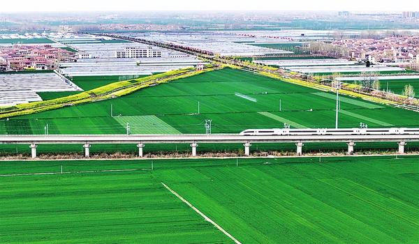 4月11日,一列高鐵列車駛過扶溝縣境內(nèi)廣袤的麥田。近年來,扶溝縣累計建成高標(biāo)準(zhǔn)農(nóng)田119.7萬畝,疏浚治理河道64公里,維修重建閘涵33座,為實現(xiàn)穩(wěn)產(chǎn)增收提供了堅實保障。