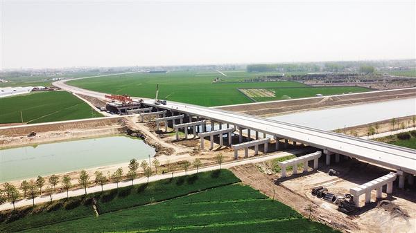 建設(shè)大道東延項目完工后,將有效改善周口市中心城區(qū)交通狀況,提升城市形象,促進(jìn)地方經(jīng)濟(jì)社會高質(zhì)量發(fā)展。圖為4月14日,正在緊張施工的建設(shè)大道東延項目新運河橋工程。